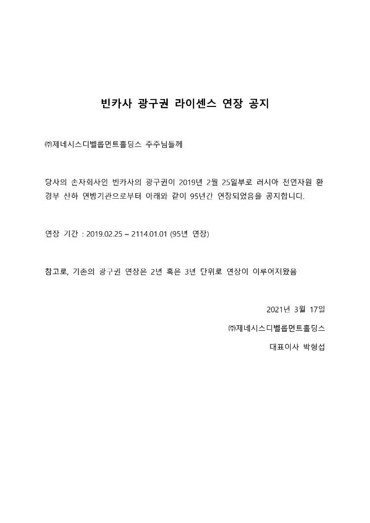 (주)제네시스디벨롭먼트홀딩스 외국인투자자 유치 공지